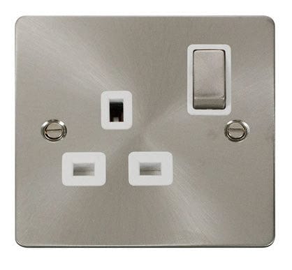 Flat Plate Satin Chrome Ingot 1 Gang 13A DP Switched Plug Socket - White Trim