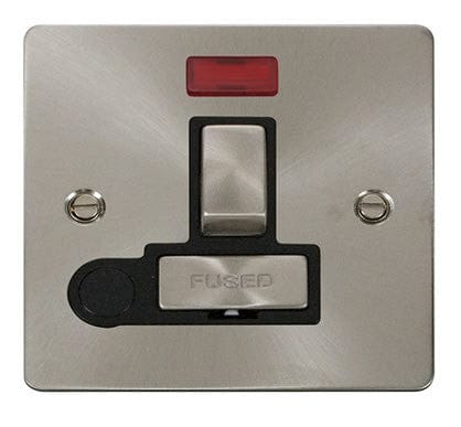 Flat Plate Satin Chrome Ingot 13A Switched Connection Unit + Flex + Neon - Black Trim - SE Home