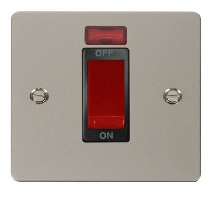 Flat Plate Pearl Nickel 1 Gang 45A DP Switch + Neon - Black Trim
