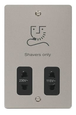 Flat Plate Pearl Nickel 115/230v Shaver Socket - Black Trim