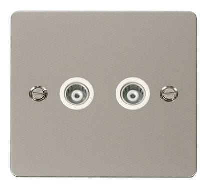 Flat Plate Pearl Nickel 2 Gang Isolated Coaxial Socket - White Trim