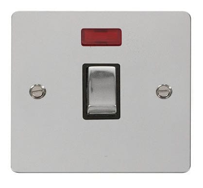 Flat Plate Polished Chrome Ingot 20A 1 Gang DP Switch + Neon - Black Trim