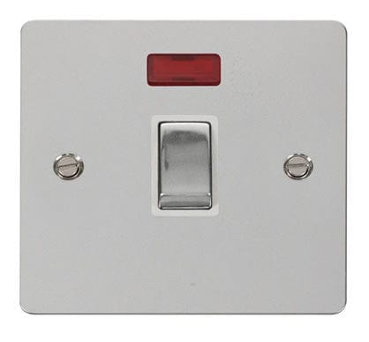 Flat Plate Polished Chrome Ingot 20A 1 Gang DP Switch + Neon - White Trim