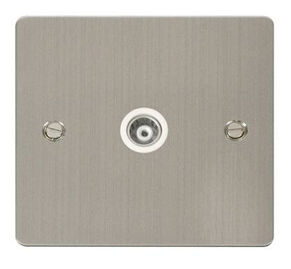Flat Plate Stainless Steel 1 Gang Isolated Coaxial Socket - White Trim