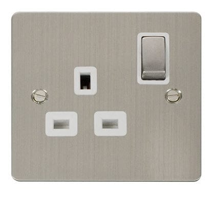 Flat Plate Stainless Steel Ingot 1 Gang 13A DP Switched Plug Socket - White Trim