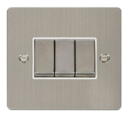Flat Plate Stainless Steel Ingot 10AX 3 Gang 2 Way Light Switch - White Trim