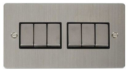 Flat Plate Stainless Steel Ingot 10AX 6 Gang 2 Way Light Switch - Black Trim