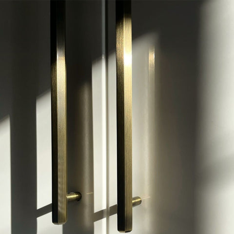 Hexagonal Brass Cupboard Bar Handle - Antique Brass - Hole Centre 632mm