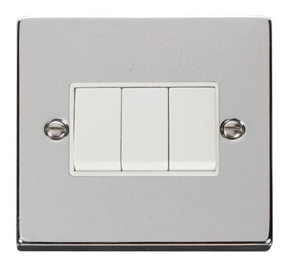 Polished Chrome 10A 3 Gang 2 Way Light Switch - White Trim