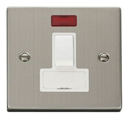 Stainless Steel 13A Fused Connection Unit Switched With Neon - White Trim - SE Home
