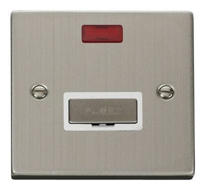 Stainless Steel 13A Fused Ingot Connection Unit With Neon - White Trim